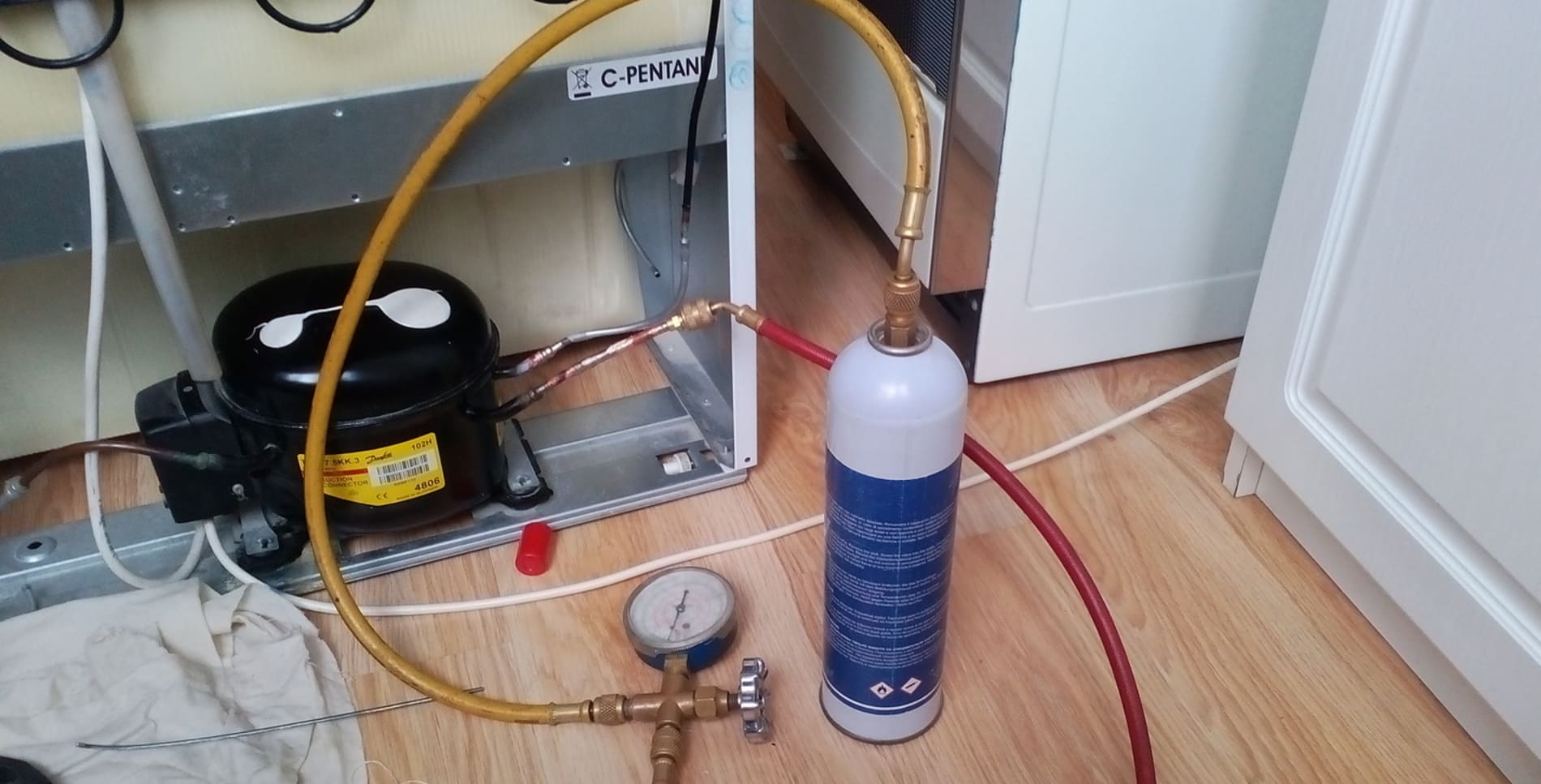 • Перезаправка холодильника. Иногда в случае небольшой утечки из-за экономической нецелесообразности ее устранения, когда затраты на ремонт оказываются почти равносильны покупке нового агрегата (например, при утечке в запечатанной части), мастер предлагает перезаправить холодильник фреоном без гарантии. При этом агрегат может исправно проработать еще несколько лет без дозаправки.
